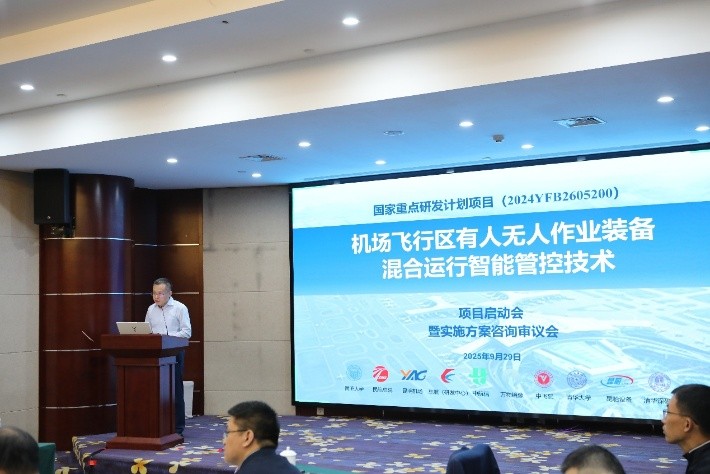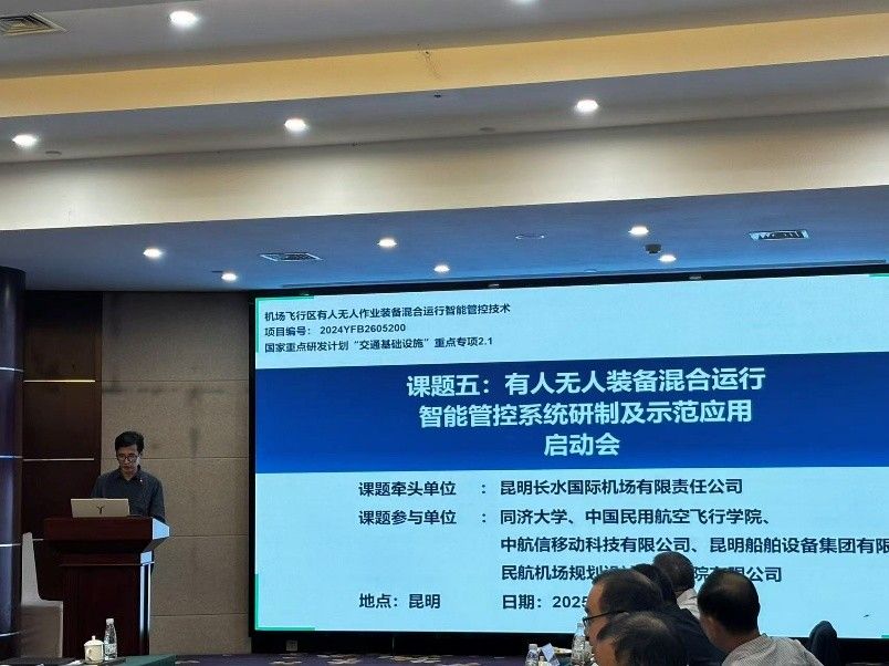 2025年9月29日,在交通运输部科技司和国家自然科学基金委员会高技术研究发展中心指导下,由同济大学交通学院马万经教授担任项目负责人的国家重点研发计划“机场飞行区有人无人作业装备混合运行智能管控技术”项目启动暨实施方案咨询审议会在昆明百事特悦航机场酒店顺利召开。