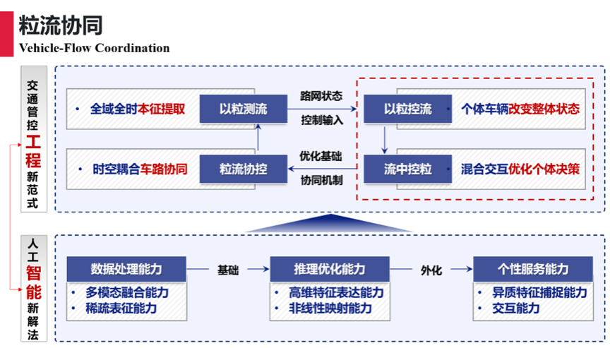 随后,马万经教授介绍了在载运工具由运力向算力转变的数智化变革背景下,粒流协同控制作为交通管控新范式的重要内涵,并从“以粒测流、以粒控流、粒流协控、流中控粒”四个方面展开系统阐释,结合典型应用案例进行了深入分析。