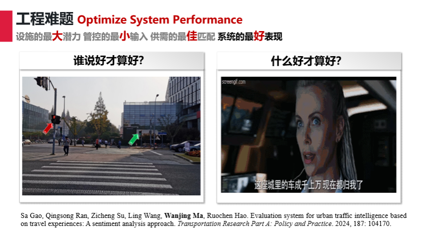 报告第一部分,马万经教授系统阐述了交通管控领域面临的四个核心工程难题,即设施的最大潜力挖潜、管控的最小数据输入、供需的最佳动态匹配以及系统的整体最优表现,为构建新一代交通管控体系提供新的思路与方向。